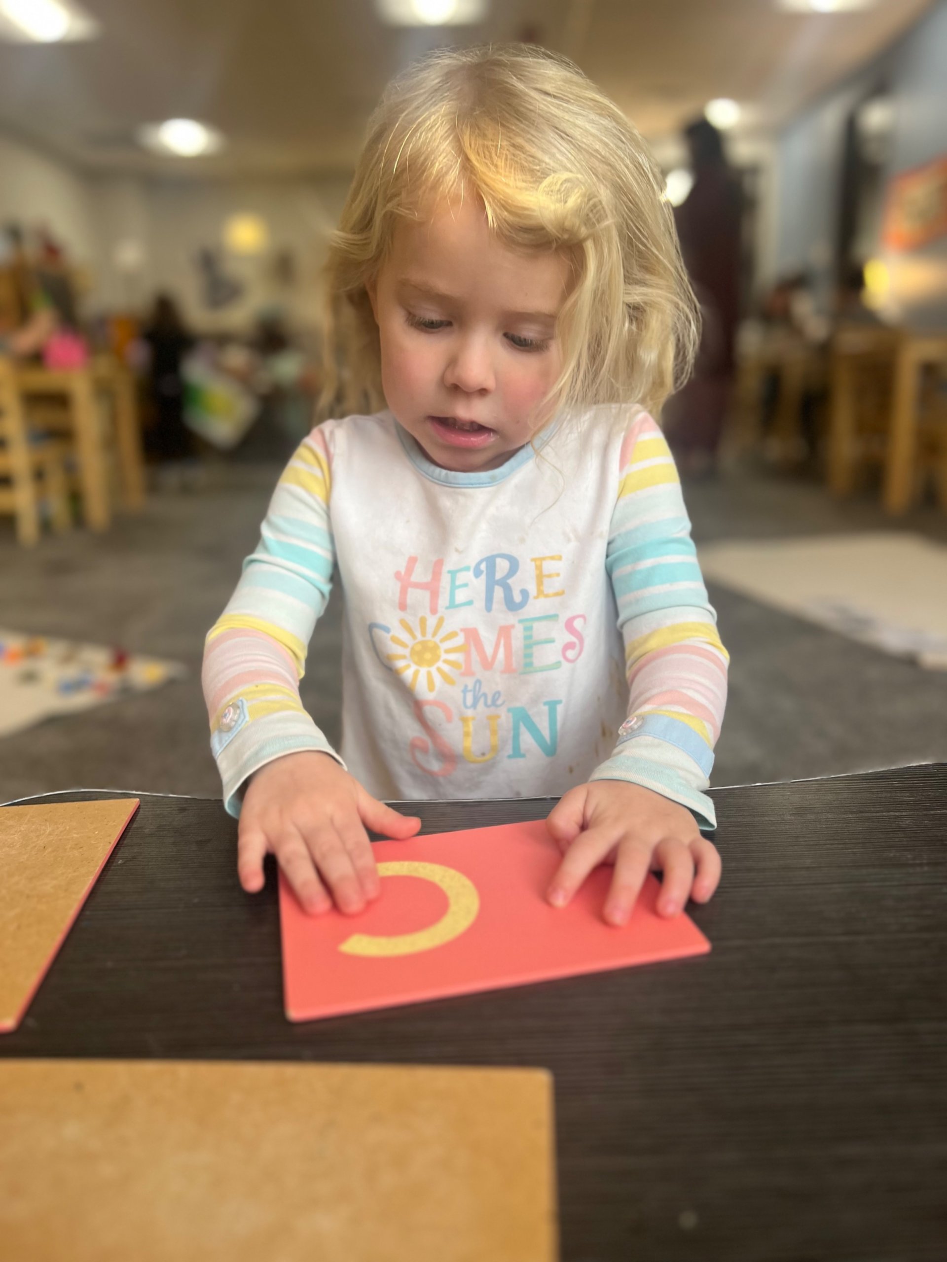 Sensorial: Children engage with Montessori materials and manipulatives which refine the senses and develop an understanding of early mathematical concepts through hands on exploration.